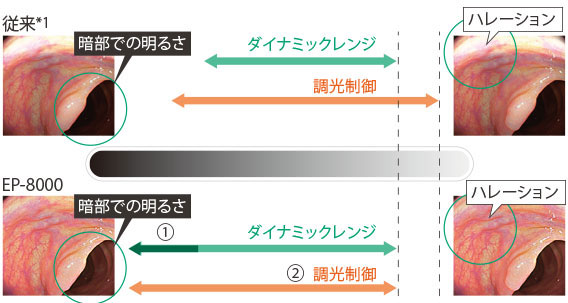 ノイズ低減技術の向上により、ノイズ抑制とダイナミックレンジ*2拡張を両立しました。加えてそれに適した調光制御をすることで、奥まで明るく鮮明でハレーションを抑えた画像を実現します。